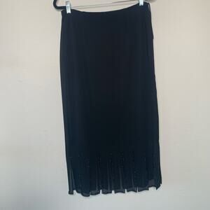 Vintage Black Skirt Rhinestoned Hem Split Hem Sz Large Chiffon Wedding NYE