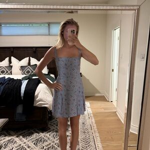 Reformation Light Blue Dress with Pink Floral Pattern