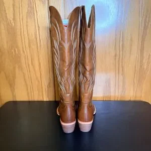 ISNOM Sz 7.5 Women's Brown Faux Leather Tall Cowboy Boots Western NIB