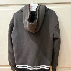 Stay cozy and stylish with this gray hooded women's jacket. Perfect for casual outings.