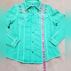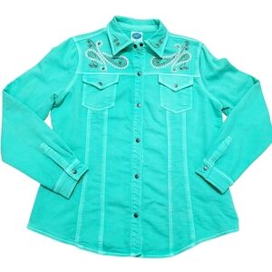 DG2 by Diane Gilman Turquoise Embellished Snap Front Jacket Shirt Women’s Medium