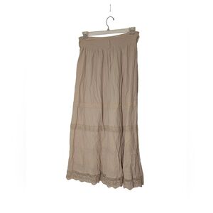 Chic maxi skirt with lace details. Soft and flowy fabric. Ideal for versatile styling.