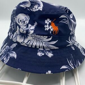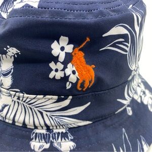 Polo Ralph Lauren Hawaiian Bear Ukulele Floral Orange Pony Bucket Hat Blue L/XL