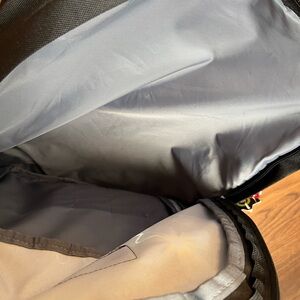 New with Tags. Stylish black backpack featuring vibrant red accents and lightening. Equipped with a laptop sleeve and multiple compartments. 29 L size.