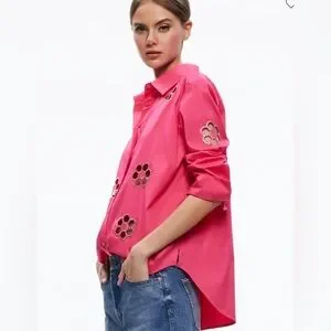 ❤️❤️ALICE AND OLIVIA FINELY FLOWER EMBELLISHED BUTTON DOWN❤️❤️