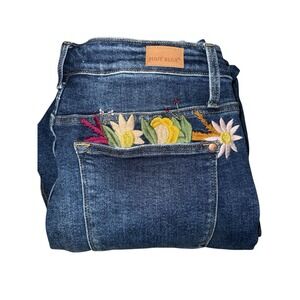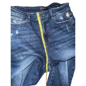 Judy Blue Womens Boyfriend Fit Jeans Sz 16W Blue High Rise Floral Embroidered