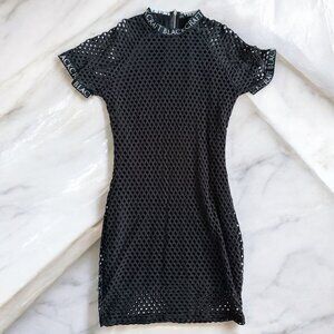 BLACKCRAFT Black Mesh Logo Bodycon Dress Size Large