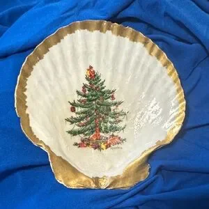 Elegant shell dish featuring a festive Christmas tree design. Perfect for adding a touch of holiday spirit to your home decor.