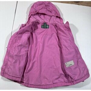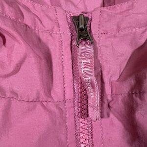 This listing is for a girls size 8 LL Bean pink windbreaker jacket. This jacket is pre-owned. No rips or tears. Has some staining on the hem and sleeves because, well, kids. Please see photos for details