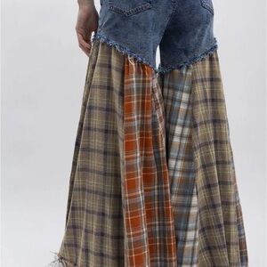 The Blue Velvet Small Patchwork Plaid Denim Frayed Wide Leg Flowy Boho Jeans are a trendy and stylish addition to any woman's wardrobe. Made from denim fabric with a plaid pattern, these jeans feature a button closure and a wide-leg style that is perfect for a boho, hippie, or gypsy-inspired look. The frayed detailing adds a touch of edgy sophistication, making them versatile for all seasons and occasions. Perfect for a festival or a casual day out, these jeans from Blue Velvet are a fashionable choice for any woman looking to make a statement.