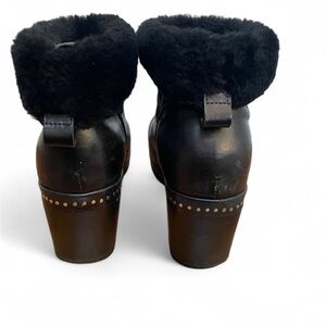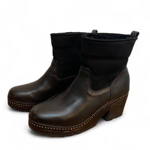 These boots are made of leather and shearling.