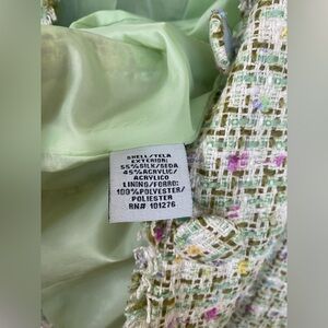 I C E Multicolor Tweed Green and Pink Fringe Blazer