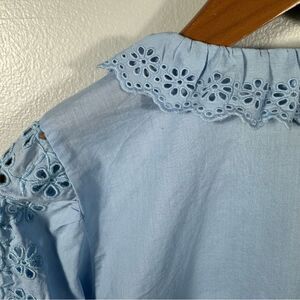 J. Crew Blue Eyelet-Trim Button-Up Shirt Size XS Cottagecore Prairie Feminine