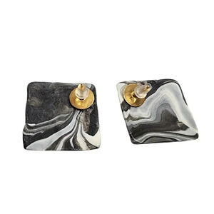 Vintage Stone Style Square Stud Earrings White Black - These elegant stud earrings feature a vintage-inspired stone style with contrasting white and black tones, exuding a timeless sophistication. Crafted to add a touch of classic beauty to any ensemble, they are ideal for both casual and formal occasions.