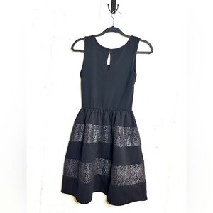 Black Sleeveless Dress With Silver Striped Skirt French Atmosphere Size Medium