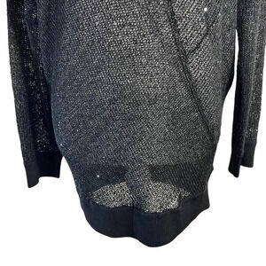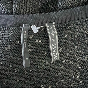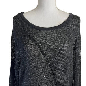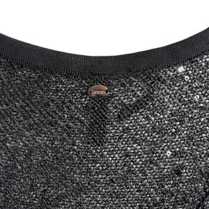 Guess Sheer Sequin Knit Black Sweater Size Medium Long Sleeves Pullover Neutral