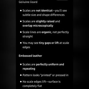Materials: unsure. Either lizard or leather.