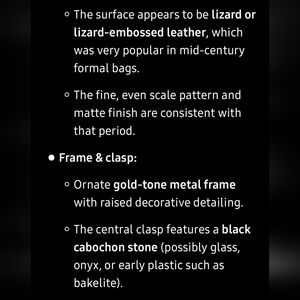 You are getting a vintage handbag, therefore expect quality, unique nuances and slight imperfections from prior use. It clasps perfectly and is in good working condition. This handbag seems to tell a story!