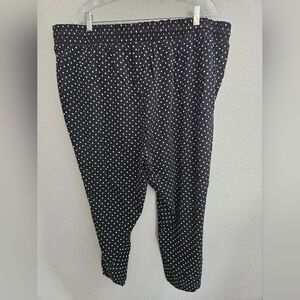 Torrid pull-on elastic waist pants, with drawstring. Black with white polka dots. Plus size 3, inseam approx 25". Slant pockets in front.