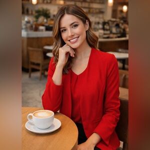 Bold and stylish red blazer. Perfect for professional and casual settings. Adds a vibrant touch to any outfit.