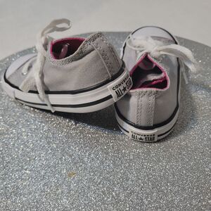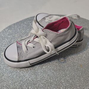 Converse All Star Double Tongue Canvas Low Top Sneakers Gray Pink Child Size 9