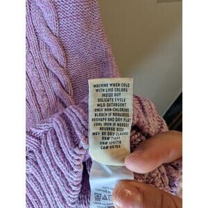 L.L.Bean Lavender Purple Cable Knit Full Zip Sweater Cotton Mock Neck LargeBeautiful L.L.Bean 100% cotton cable knit zip-up sweater in soft lavender purple. Classic cable knit texture throughout with mock neck and full front zipper. Chunky knit construction perfect for layering or wearing alone. The perfect blend of cozy comfort and timeless style in a gorgeous on-trend color.