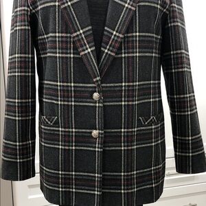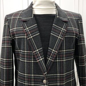 Alia Plaid Blazer – Women’s Size 12 – Grey/Red/Off-White