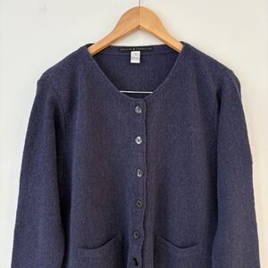 Peruvian Connection 100% Alpaca Knit Cardigan Sweater Button Front Blue Sz L