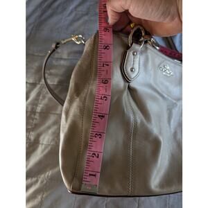 Coach Leather Satchel Taupe Greige Crossbody Bag Silver Hardware Zip Top Pockets