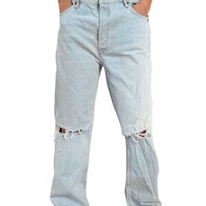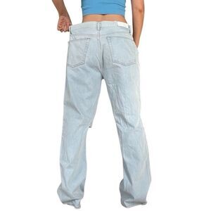 Re Done 90s High Rise Loose Bleach Distressed Jeans Size 32 Light Blue Denim.