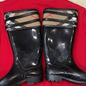 Stay dry and fashionable with these chic black and tan winter rain boots. Perfect for rainy days, these boots offer both style and comfort.offer as is just need to be little clean