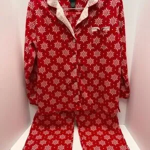 Charming womens pajama set with snowflake design. Soft and comfortable for cozy nights. Worn once for two hours. Like new condition.
