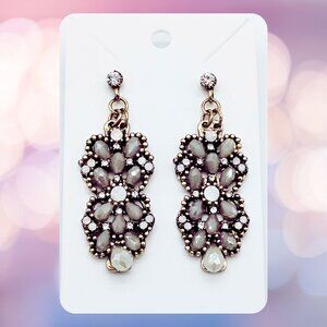 Beautiful pre-owned dangle earrings featuring an antique style silver-tone setting with clustered opaline glass stones and clear crystal accents. The floral-inspired design offers a vintage look with soft shimmer and elegant movement. A refined statement piece ideal for evenings, special events, or elevated everyday wear.