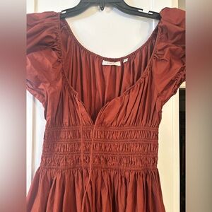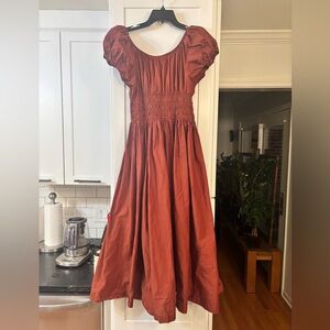 Doen Quinn cotton poplin puff sleeve midi dress in Amberwood rust