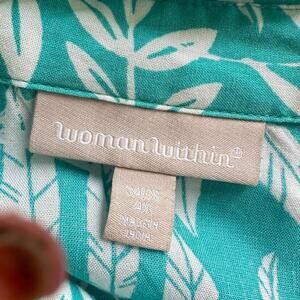 Woman Within Turquoise Blue Top Blouse Size 4X Tropical Beachy Button Up Pleated