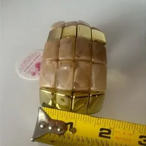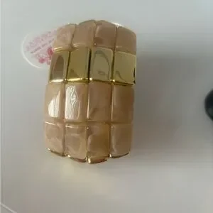 Chic bracelet by featuring gold and tan hues. A stylish accessory to elevate any ensemble.