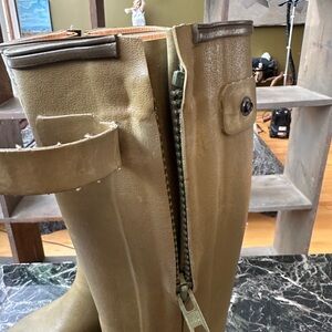 Le Chameau olive green rain boots! Worn only once or twice and in great condition. Interior hidden zip detail. Size 9.5 (41)
