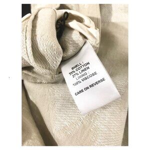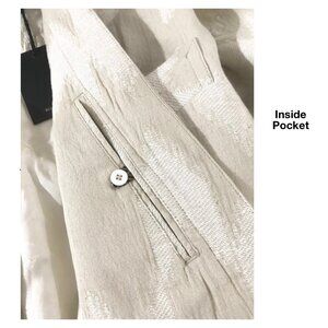 Color: Oyster. Cotton Linen Jacquard. 4 pockets: 2 front patch pockets, 1 chest pocket, 1 internal pocket w/button closure. Lined. Belted closure. 73% Cotton, 27% Linen. Lining 100% Viscose. Machine wash cold.