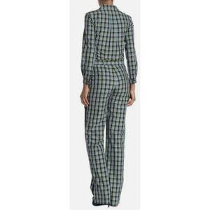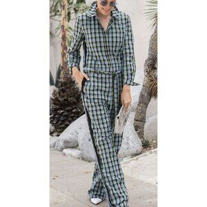 Burberry Jumpsuit Check Tie Waist Azure Blue Size 6 NWT
