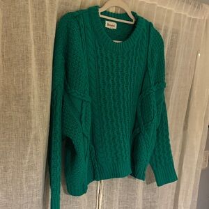 Luxurious emerald sweater with a classic cable knit pattern. Perfect for cozy days.