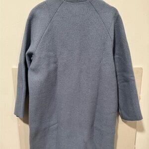 Elegant slate blue cape with front zipper. Perfect for stylish layering.