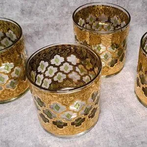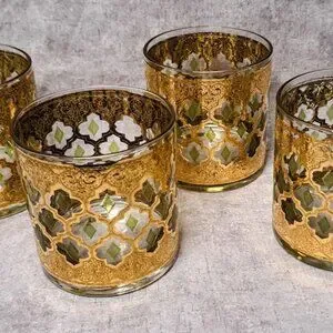 A set of 4, post 1960s Culver Valencia green rocks glasses that are not signed. They are in excellent condition. Although I have inspected them, there may be flaws that were not immediately apparent.