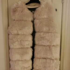 Elegant faux fur vest in a soft cream color. Perfect for adding a touch of luxury to any outfit.