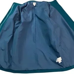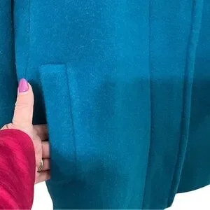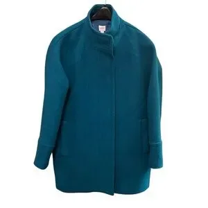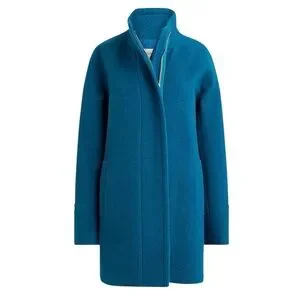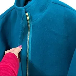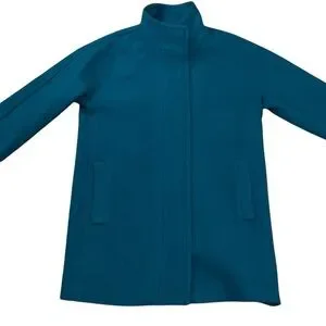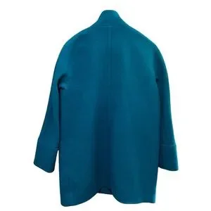 This coat is a beauty, wool blend, stand up collar, gold zipper in sun-drenched azure. Sold out online.