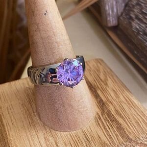 High polished Stainless Steel Ring with Amethyst AAA Grade CZ Size 9