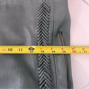 Jen & co, Gray vegan leather Bag with Decorative Stitching and belt style strap