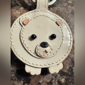Coach Patent Leather Polar Bear Mink Tail Minky Key Ring Bag Charm
