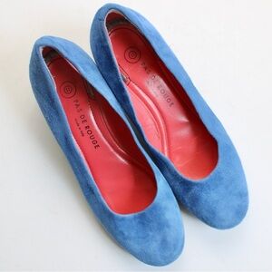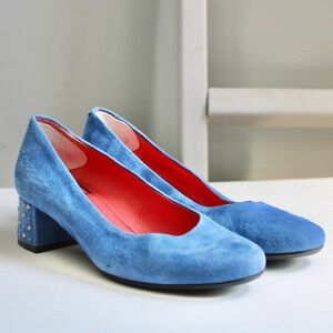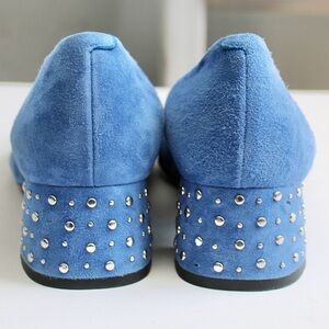 Pas de Rouge Blue Suede Round Toe Embellished Studded Block Heel 2190 Size 7.5