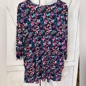 Woman Within Floral Top Women’s 1X Pullover 3/4 Sleeve Multicolor 100% Cotton Comfy Cozy Cottagecore
