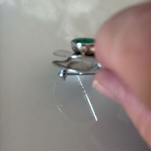 GUC. Not marked but tested. Stone chips unknown (turquoise?). Measures 1.5” x 1.25”.